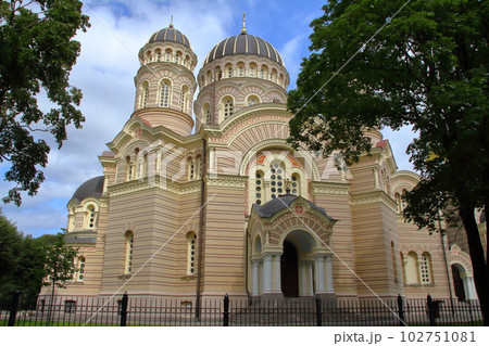北欧バルト三国ラトビアの首都リガ エスプラナーデ公園の一画にあるロシア正教会の救世主生誕大聖堂