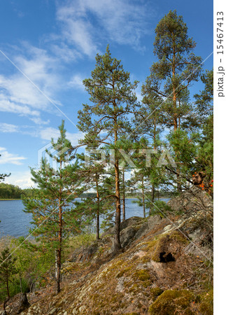 Ladoga lake landscape. Pine trees