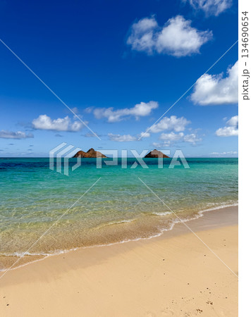 ハワイ ラニカイビーチ 白い砂浜と透明な海 青空 南国 風景