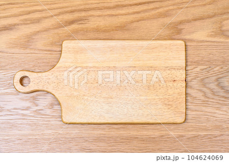 テーブルに置かれた使用感のあるゴムの木のカッティングボード 色味ナチュラル寄り薄め青め