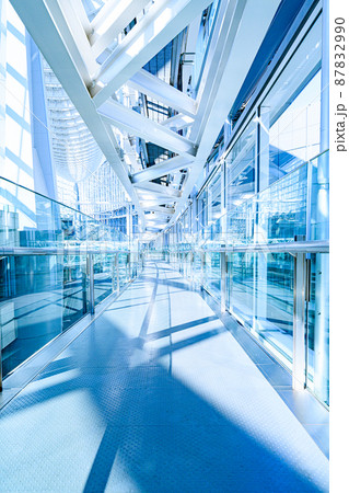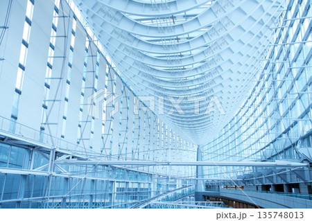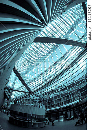 東京国際フォーラム 近未来的な巨大吹き抜け空間 ガラス張りの建物 都会の風景 デザイン素材