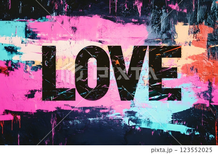 Graffiti-style love text, paint drawing, illustration, Valentine's Day, February 14