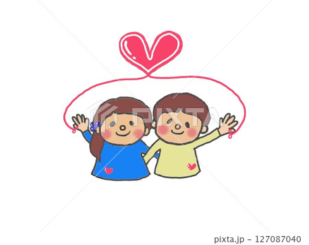 薬指が赤い糸で繋がったハートいっぱい仲良しな男の子と女の子