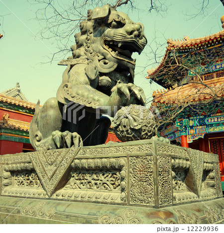 bronze lion in Lama Temple (Beijing, China)