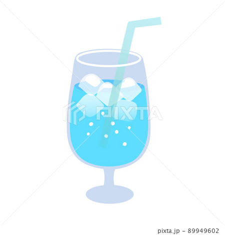 青色のクリームソーダ(ソーダフロート) 飲み物の手描き水彩イラスト素材