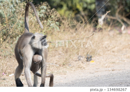 インドのプシュカル 街に出没したハマヌーン・ラングールの親子