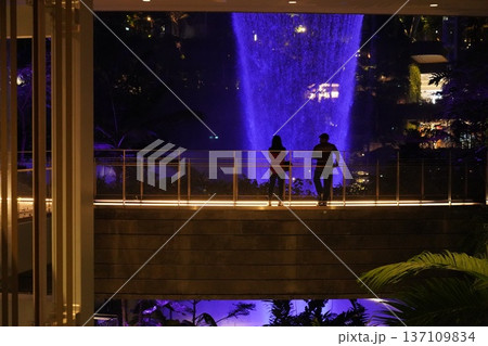 People Viewing Waterfall in Singapore Jewel Changi Airport