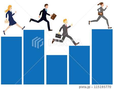 ビジネスマン達が営業成績で争っているイメージイラストです。
