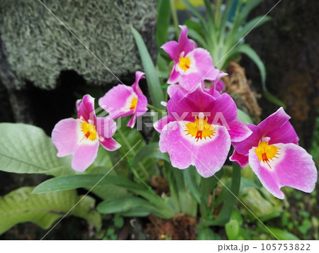 ミニ胡蝶蘭 ピンク色の花 明るい緑の自然背景