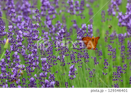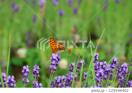 ヒョウモンチョウとラベンダー(北海道・旭川市)