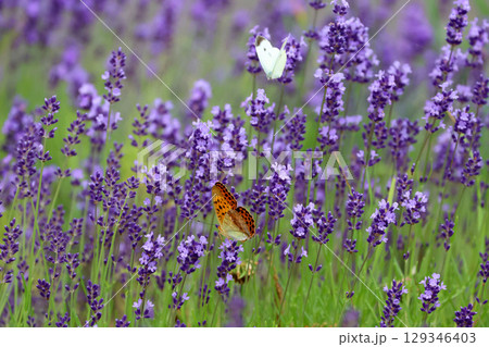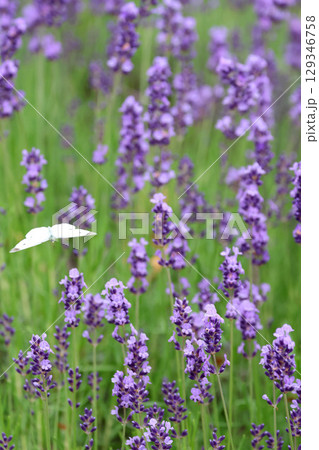 ラベンダーの蜜を吸うモンシロチョウ・紋白蝶