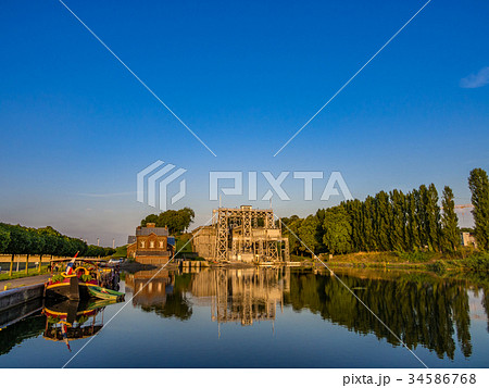 ベルギー ラ・ルヴィエール ボートリフトと夕日