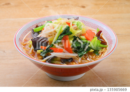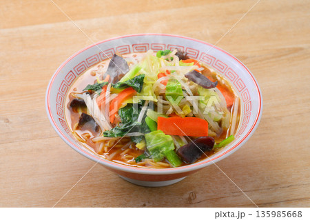 注)湯気は合成です。野菜たっぷりの味噌ラーメン。