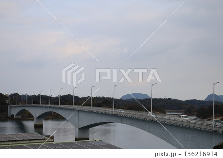 べた踏み坂で有名な江島大橋(鳥取県境港市と島根県松江市八束町江島を結ぶ橋・江島側から撮影)