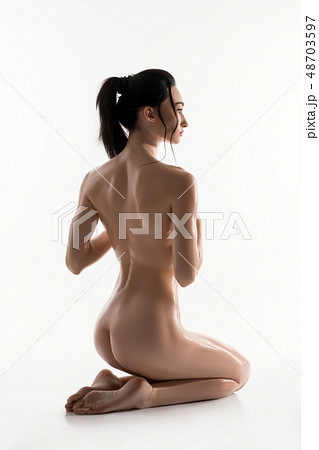 Gorgeous nude brunette isolated rearview