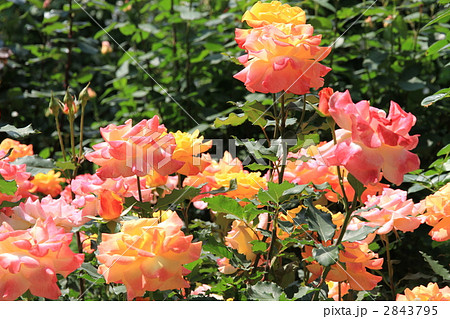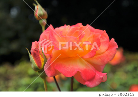 黄色からオレンジ・朱赤へ変化する薔薇の花・リオサンバ