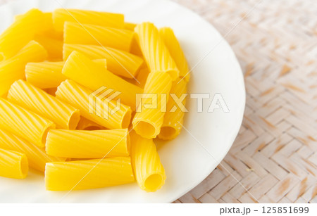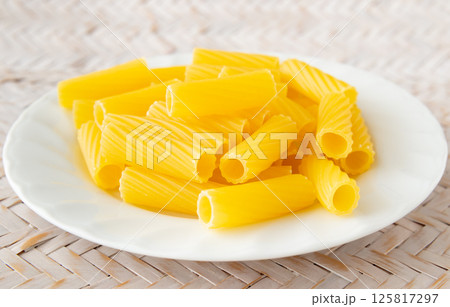 皿に盛られたリガトーニ ショートパスタ 乾麺