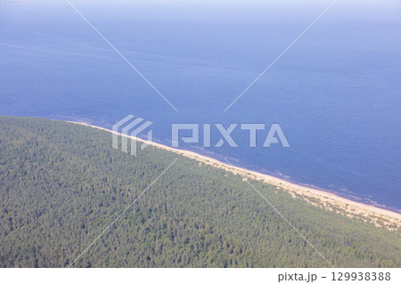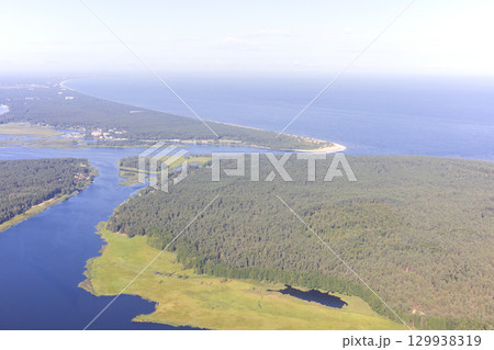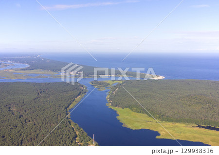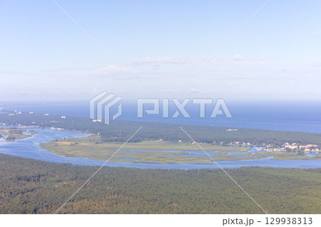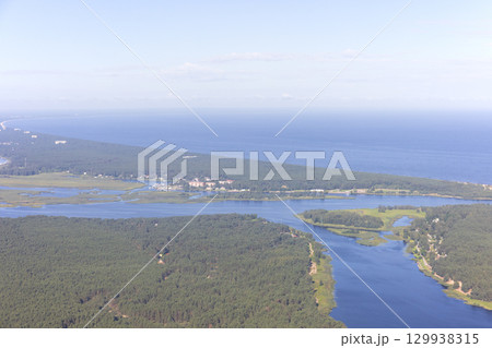ヨーロッパ、ラトビア共和国のリガ湾付近の空撮