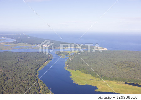 ヨーロッパ、ラトビア共和国のリガ湾付近の空撮