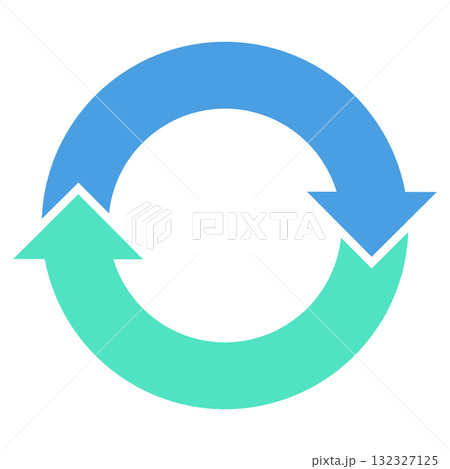 2つの矢印が循環する回転矢印(サイクル矢印) ループ 寒色系カラー ベクターイラスト 単品