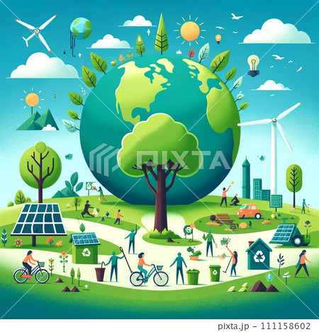 サステナビリティとエコライフ 環境保護と持続可能な生活をテーマにしたイラスト素材