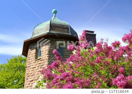 北欧スウェーデン第2の都市ヨーテボリ(イェーテボリ) リソスベルエットの丘の上の建造物と花
