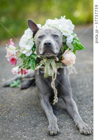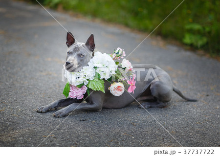 thai ridgeback dog in flower wreath