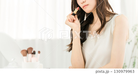 メイクをする若いアジア人女性(口紅・ルージュ・グロス・リップ)