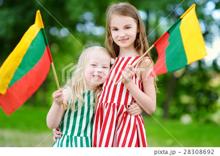Two adorable little sisters celebrating Lithuanian