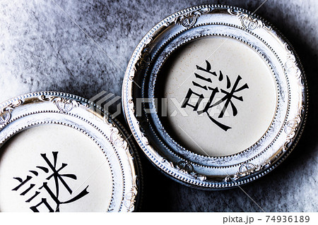 クラシカルなフレームに入った手書き文字『謎』『謎』