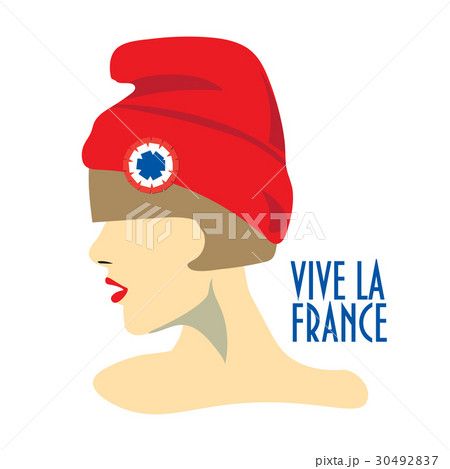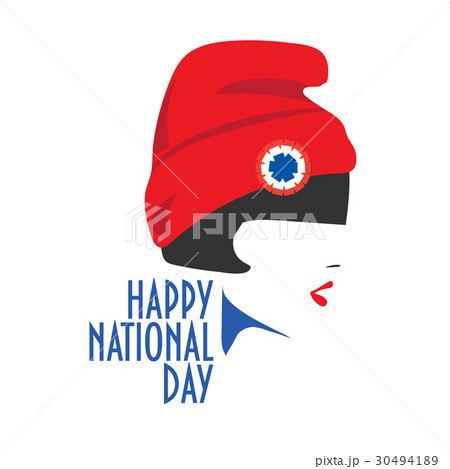Minimalist National Day greeting card vector design: a girl with red hat and tricolor cockade on.