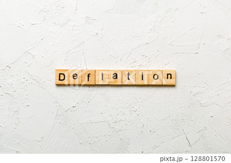 deflation word written on wood block. deflation text on table, concept