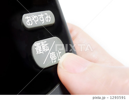 エアコンの停止ボタンを押す手