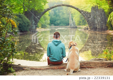 Pensive man sitting with his dog