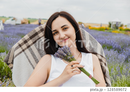 Portrait of a young girl sitting in a rocking chair in a lavender field