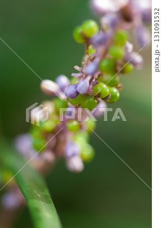 色づく前の緑色をしたヤブランの実