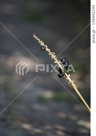 ヤブランの黒い実というか丸い果実。秋に黒く色づきます。Liriope muscari