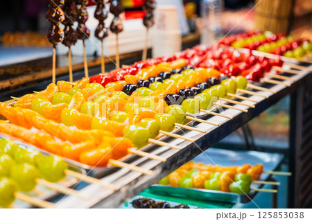 ソウル 明洞の屋台スイーツ タンフル(フルーツ飴)