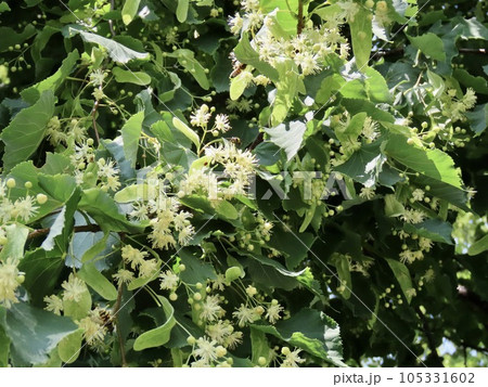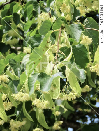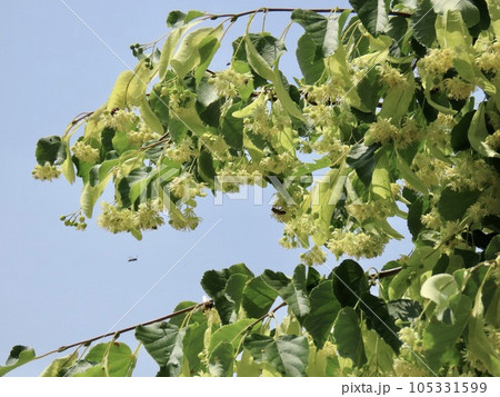 自然風景植物写真 安眠作用のある西洋菩提樹の花と苞(ほう)
