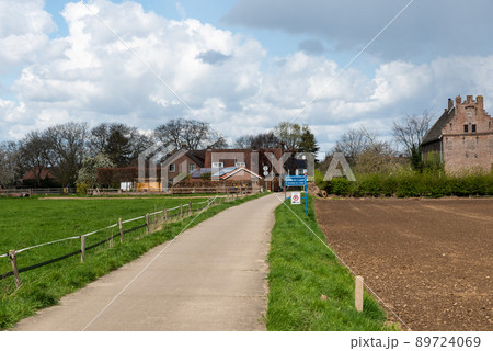 Ohe en Laak, Limburg, The Netherlands - Biking trail through the fields at the entrance of the village surrounded with farmland