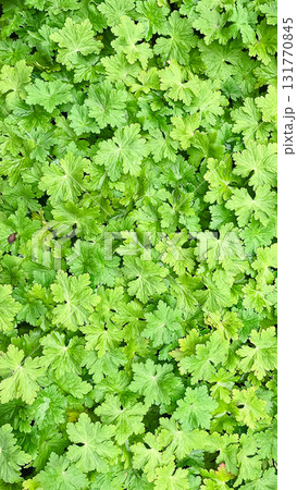 Full frame of vibrant green leaves (Geranium) creating a dense, natural texture background