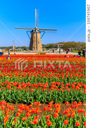 オランダ風車とチューリップ