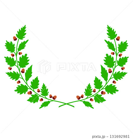 Watercolor green, orange leaf branches wreath isolated background. Abstract holiday foliage illustration with empty space for text. Round floral frame for greeting cards, invitation, kid birthday