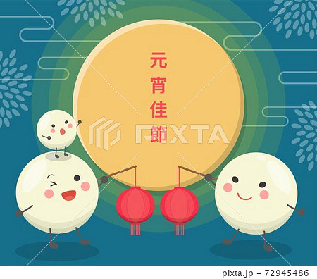 中國與台灣的節日,糯米做成的亞洲甜點:湯圓,可愛卡通吉祥物,向量插畫,字幕翻譯:元宵節