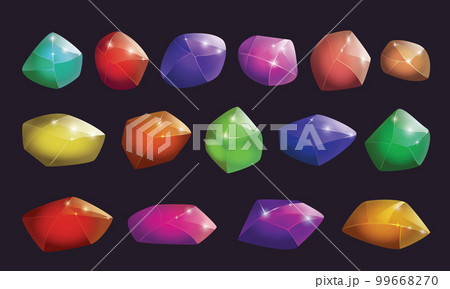 Crystal gems game assets collection, Cartoon Magic gemstones and Natural minerals, vector illustration