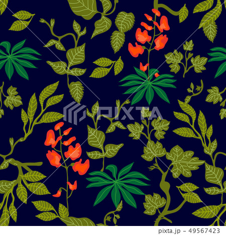 Hand drawn lupin branches seamless pattern. Vector illustration