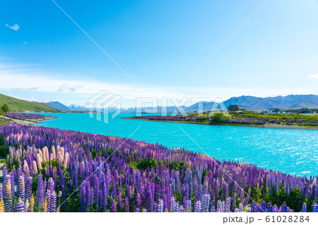 Landscape at Lake Tekapo Lupin Field, New Zealand