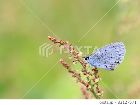 瑠璃小灰蝶 蕎麦の葉にルリシジミ蝶
