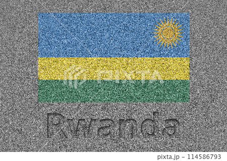 石板の上に描かれたルワンダの国旗と、掘ったような「Rwanda」の文字