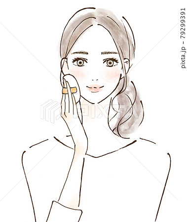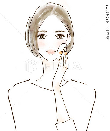 ルースパウダーをのせる女性のイラスト 化粧 メイク 美容 人物